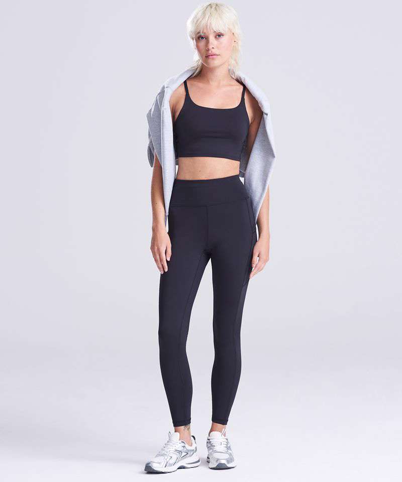 Four-way stretch for maximum movement. Side phone pockets. Adjustable waist cord. Back zip pocket. Ergonomic fit avoiding high-abrasion areas for maximum comfort. Made with recycled polyester.