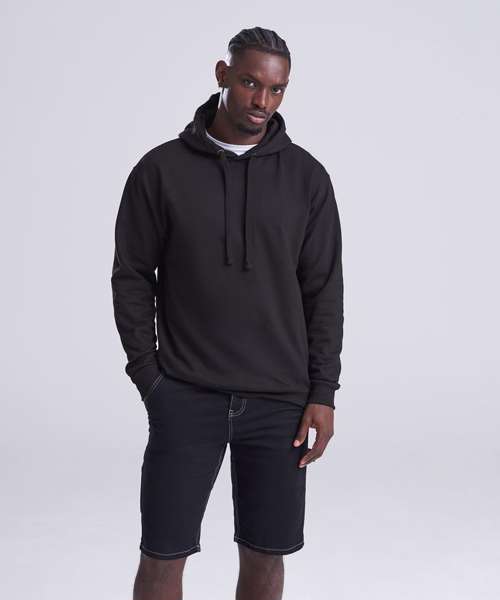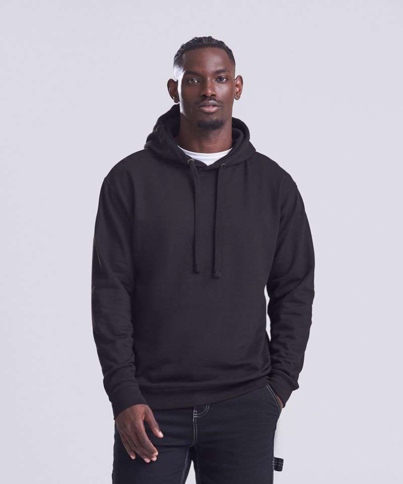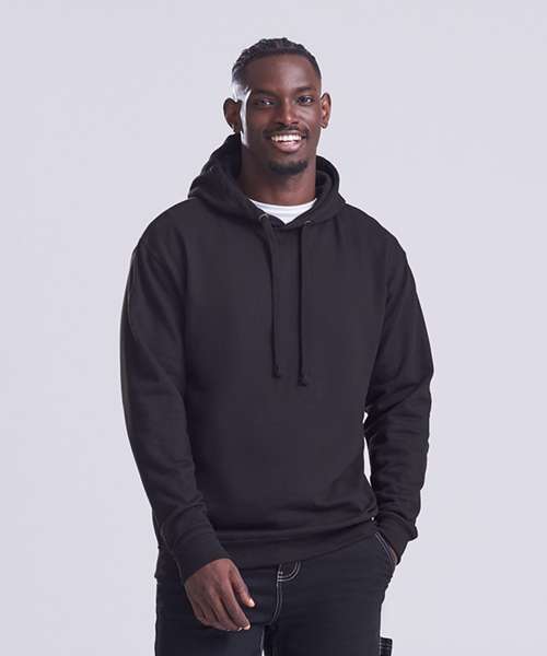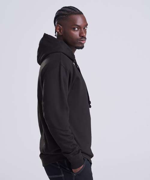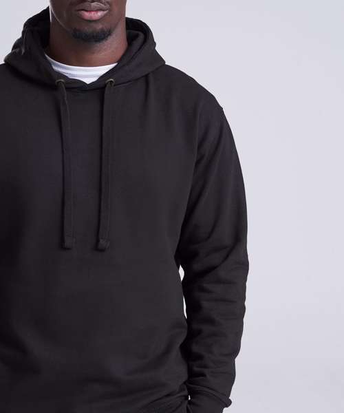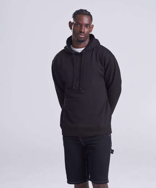 Twin-needle stitching detail. Double fabric hood. Ribbed cuffs and hem. Soft cotton faced fabric creates ideal printing surface. Simple tear-out label makes it perfect for rebranding. Flat lace drawcords. No pocket for maximum print surface area. Brushed inner fleece.