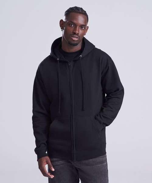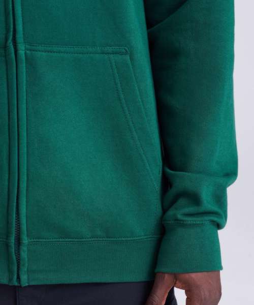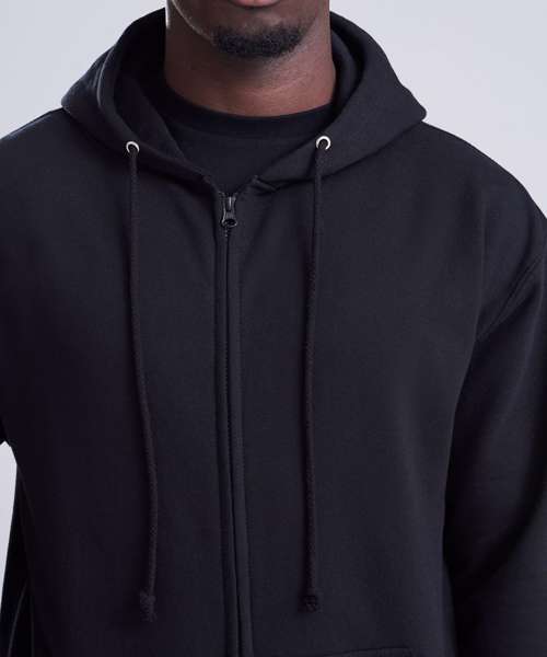 Full zip hoodie with a covered main zip with self fabric. Twin needle stitching detailing and double fabric hood with self coloured cords and kangaroo pouch pocket. Ribbed cuff and hem and self coloured twill tape puller. Soft cotton faced fabric creates ideal printing surface. Simple tear out label makes it perferct for rebranding. Brushed inner fleece.