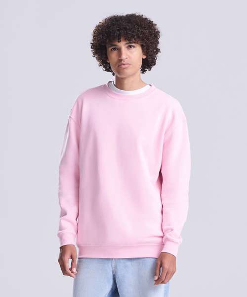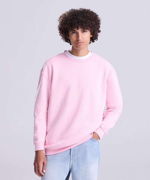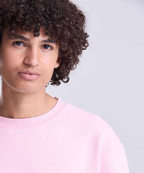 Crew neck sweatshirt. Set-in sleeves. Taped neck. Stylish fit. Brushed inner fleece. Simple tear-out label makes it perfect for rebranding. Twin-needle stitching. Ribbed collar, cuffs and hem. Soft-cotton faced fabric creates ideal printing surface.