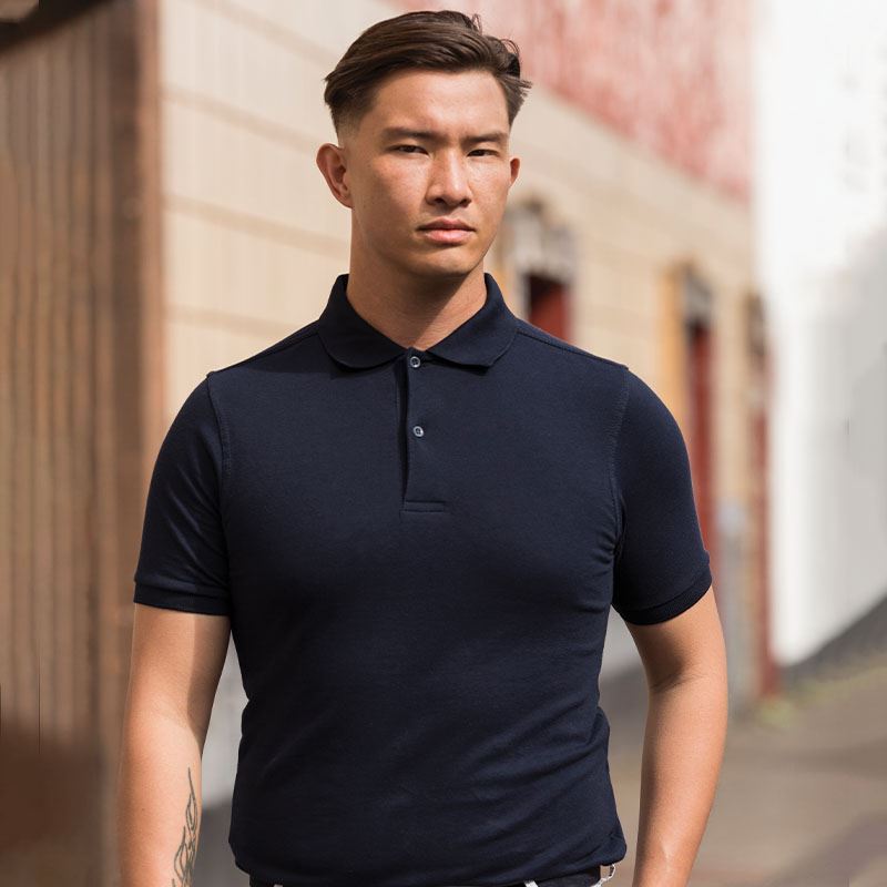Modern and stylish fit with short sleeves and side vents. Two button placket with dyed-to-match buttons and spare button. 1x1 ribbed flat collar and cuffs. Cuffed sleeves. Taped neck. Twin-needle stitching detail on sleeves and bottom hem. Size label only, for easy rebranding - colour coded black for Unisex. Short sleeves. Excellent surface for printing and embroidery.