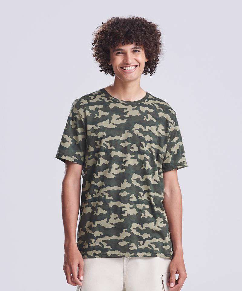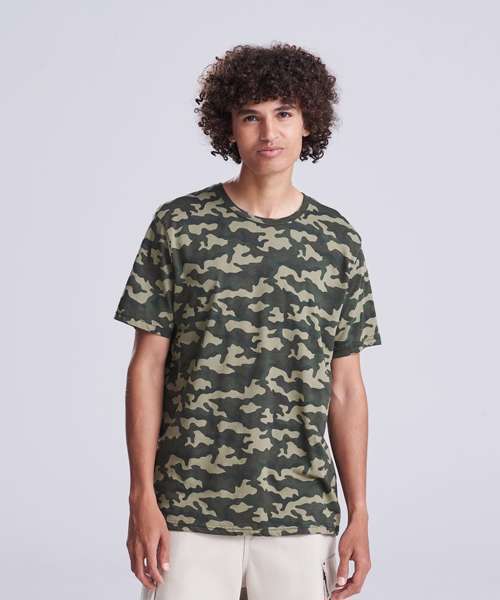 Often fitted t-Shirts lose their shape after a few months, not this one. Made from 100% cotton, the camo tee is a favourite in the Just Ts range. Cut with a stylish fit and a crew neckline, this tee is finished with a classic camouflage all over print. Team up with jogging bottoms for a casual and contemporary look.