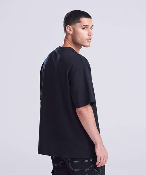 Oversized fit. Side seams. Ribbed crew neck. Set-in sleeve. Boxy shape. Taped back-neck. Excellent surface for print or embroidery.