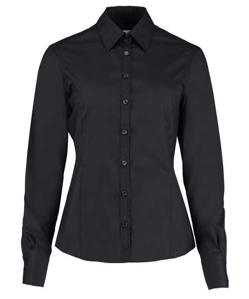 Soft interlined fused stand-up collar. Two curved front panels. Two curved back panels. Double-stitched sleeve and side seams. Single stitched yoke, cuffs and armholes. Rounded hem. Adjustable cuff with no button placket. Spare buttons. Kustom Kit® woven back neck label.