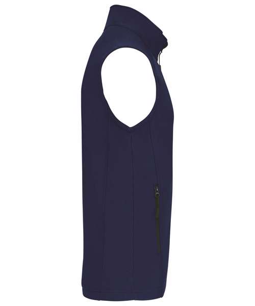 Softshell 3 layer bonded fabric. Breathable up to 3000 gsm/24h & water resistant up to 8000 mm. 95% Polyester 5% Elastane outer layer, performance membrane mid layer & micro fleece inner layer. Zip through front. 2 zip closing side pockets. 1 right zip closing pocket. BSCI certified. SEDEX certified.
