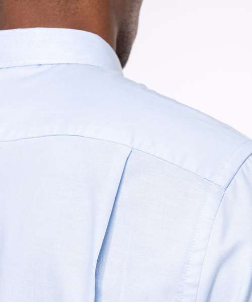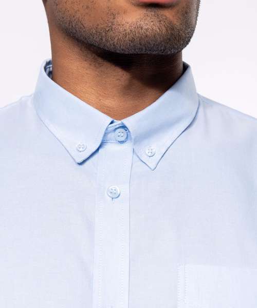 70% Cotton Oxford / 30% Polyester. Easycare fabric. Button down collar. Self coloured buttons. Left chest pocket. Back yoke with 2 side pleats. 2 spare buttons. Shaped hem. BSCI certified. Oeko-Tex certified. SEDEX certified. WRAP certified.