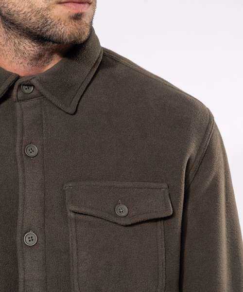 100% polyester. Microfleece outer and sherpa inner. Very soft and warm overshirt. 2 flap chest pockets. Classic placket (2 spare buttons). Adjustable buttoned cuffs. Rounded hem. Certifié STANDARD 100 by OEKO-TEX®N° CQ1007/8, IFTH.