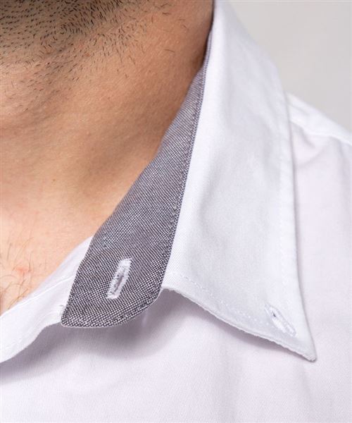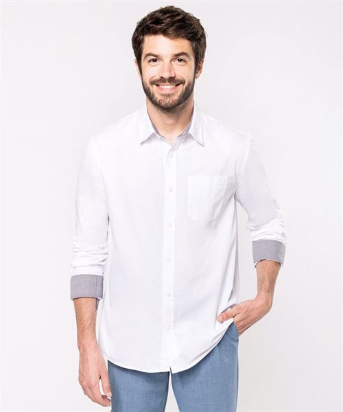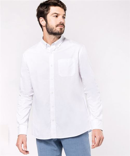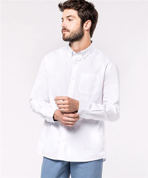 Button-down collar. Matching buttons. Chest pocket on left side. Contrast Oxford silver inner collar stand and cuffs. Back with 2 side pleats and lined yoke. Felled seam finish. BSCI certified. Oeko-Tex certified. SEDEX certified. WRAP certified.