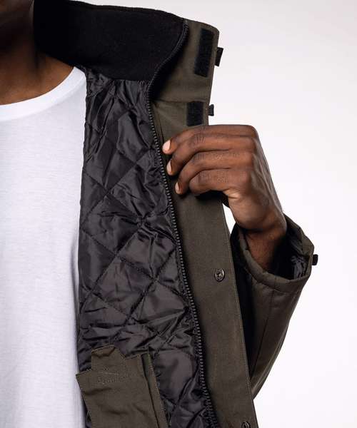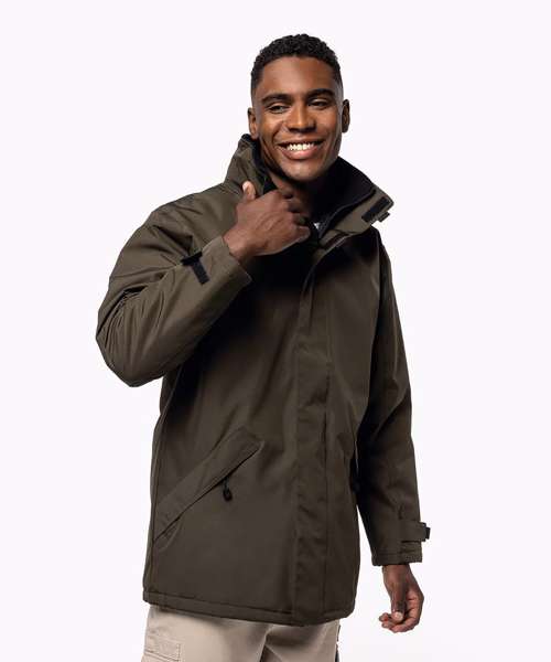 100% polyester Oxford outer - quilted polyester padding and lining. Zip fastening with tear release fastening and concealed press studs. 2 zipped outer pockets. 2 inside pockets. 1 mobile phone pocket. Concealed hood. Fleece-lined collar. Zip access for decoration. BSCI certified.