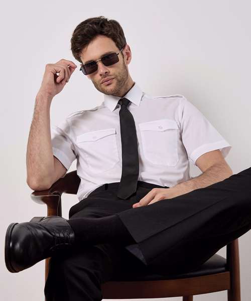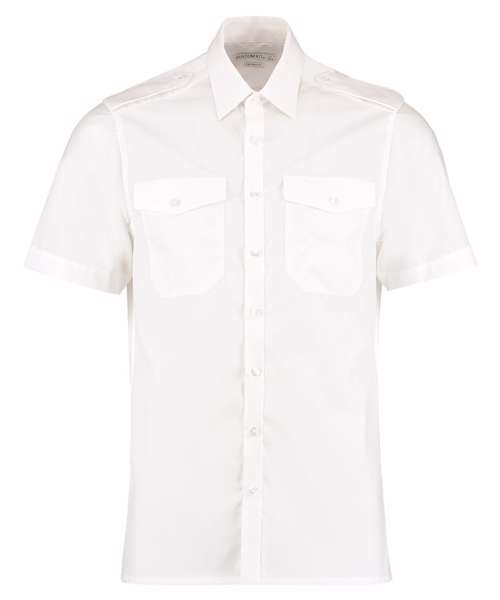 Fused stand-up collar. Easy iron. Doubled-stitched side and sleeve seams. Two chest pockets with button down flaps. Pen holder left side pocket as worn. Button down epaulettes to shoulders. Single needle stitched yoke and armholes. Single-stitched straight hem and cuffs. Kustom Kit® woven back neck label.