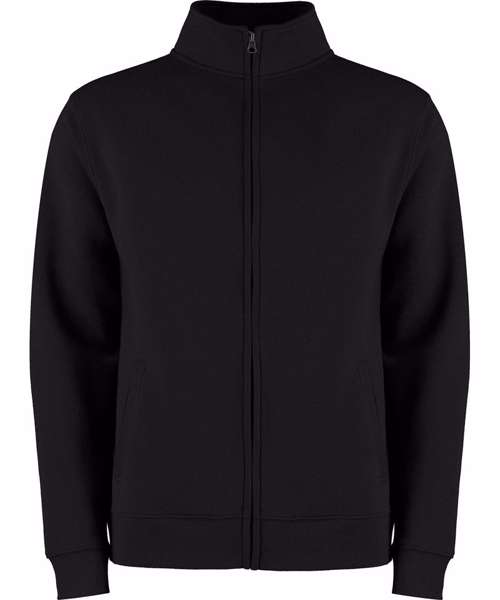 Double layered cadet collar. Self-fabric full needle rib double layered cuff and welt. Binding to back neck. Taped shoulder seams. Double stitched shoulders and armholes. Zirconium coloured metal zip and puller. Taped zip reverse. Double stitched welted side pockets with self-fabric pocket bags. Kustom Kit® tear-out back neck label.
