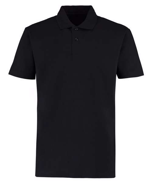1x1 rib knit collar. Two button placket. Straight top placket. Self-fabric taped back neck. Twin-needle hem and cuff. Single-stitched armholes and shoulders. Kustom Kit® tear-out label.