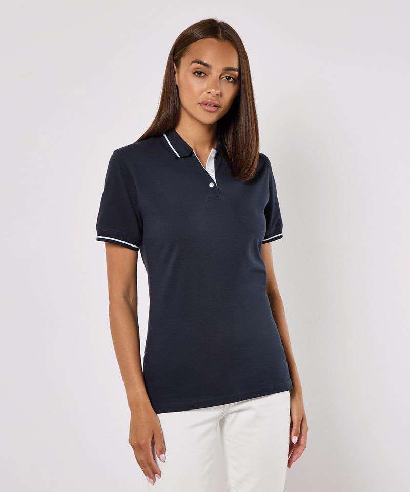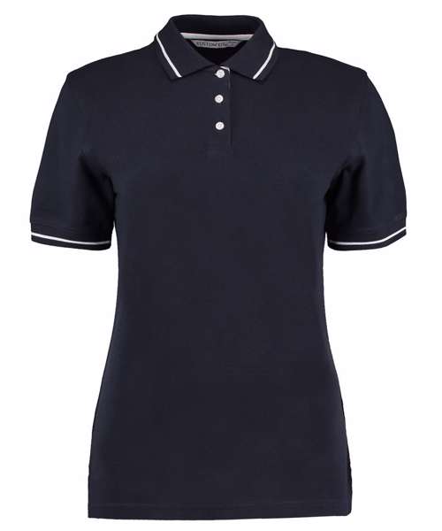 Contrast stripe 1x1 rib flat knit collar and cuffs. Contrast three-button slanted top placket. Contrast taped back neck. Half moon yoke on back. Taped shoulder seams. Contrast herringbone taped side vents. Double-stitched shoulders, armholes and cuffs. Twin-needle hem. Spare button. Kustom Kit® woven back neck label.