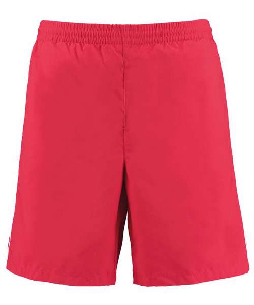 Elasticated drawcord waist. Two side zipped pockets. Straight hem. Contrast piping down outside leg. Side vents. Polyester mesh brief lining. Gamegear® woven label.