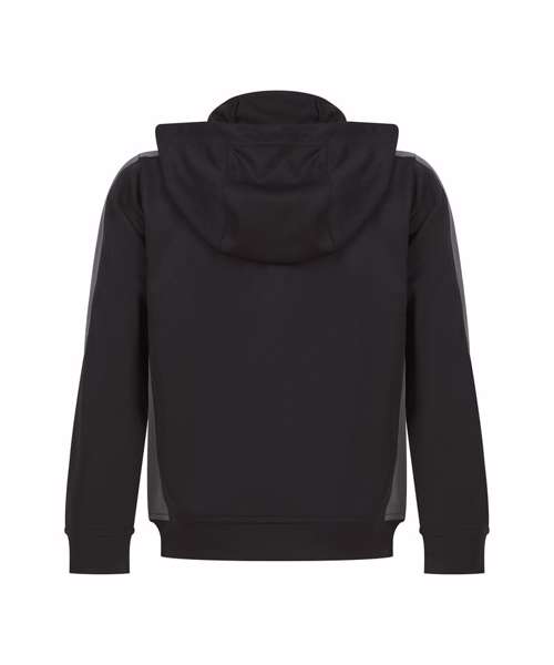 Unisex kids’ hoodie. Contrast sleeves and side panelling on contrast only. Ribbed cuffs and hem. Crossover hood neck at centre front. Zipped welt pocket in front panel side seam. Three-piece hood. Offered in contrast and solid colours. Tear-out label.
