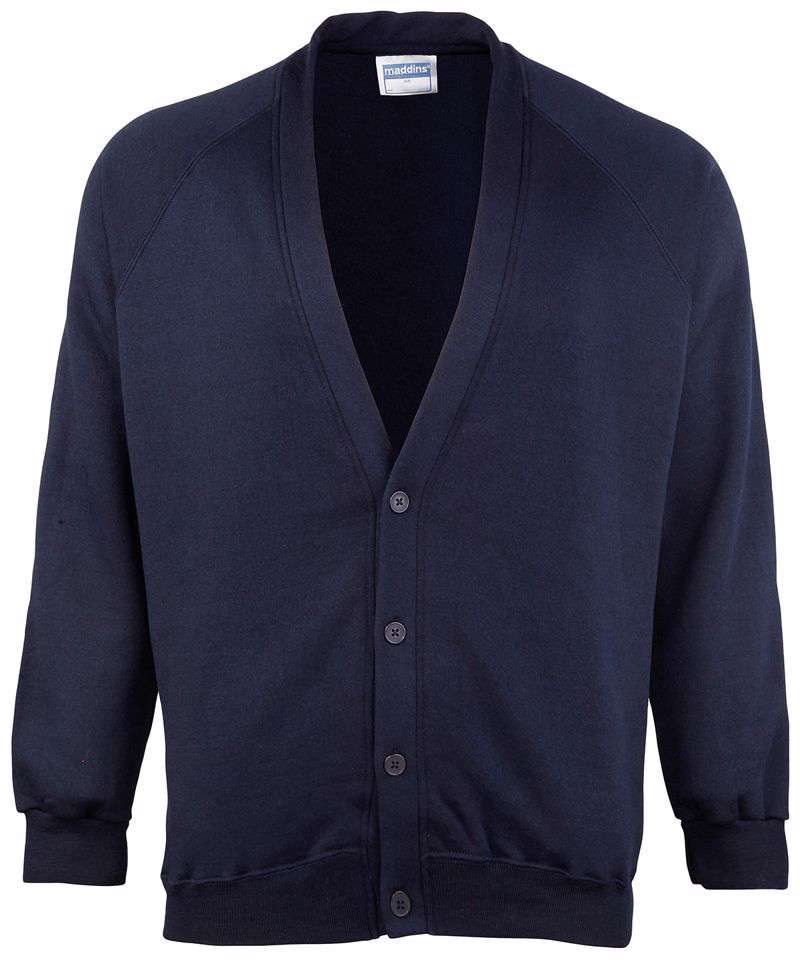 Easycare 4 self-coloured button cardigan. Coverseamed stole with knitted cuff and welt. Herringbone taped neck. Woven label.