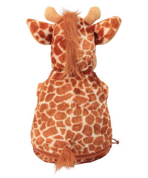 Soft plush zippie giraffe. Contrast hooves, nose, and horns. Sewn eyes and mouth. Contrast mane and the tail. White panel on tummy is perfect for decoration. Zip access on base for direct access onto the tummy for decoration. Removable inner stuffing. Can be embroidered, printed and sublimation printed. Complies with EN71 European Toy Safety regulations. Remove all hang tags and their fasteners before giving these items to a child. Suitable for all ages.