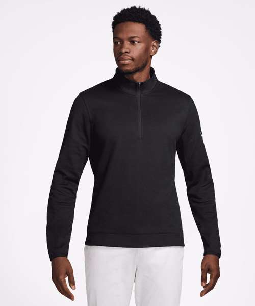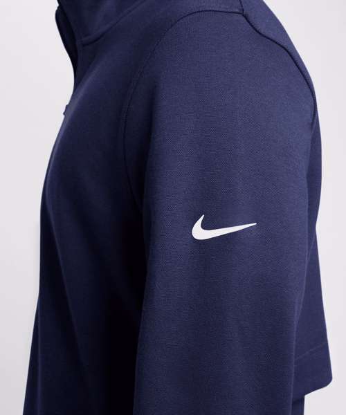 Nike Therma-FIT technology helps to manage your body’s natural heat, keeping you warm in cold-weather conditions. The soft piqué knit fabric is lightweight and breathable. A half-zip design helps make changing easy. Mesh in the back provides extra ventilation.