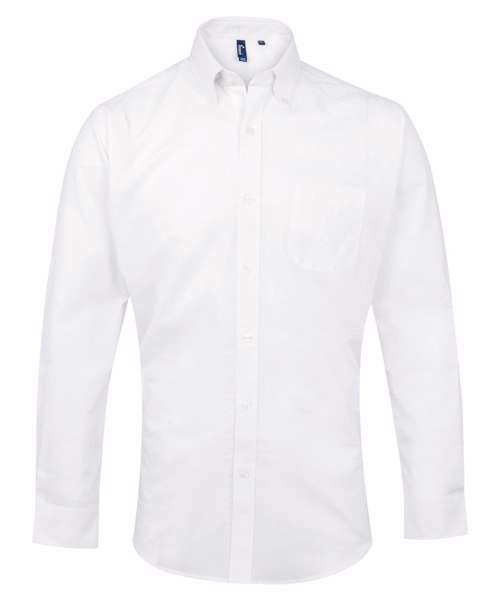 Men's signature Oxford long sleeve shirt with wrinkle free finish for a smart and professional appearance. Button down collar. Left breast open mitred pocket. Long sleeves with button fastened cuffs that will also fit cufflinks. Back pleats. Cotton rich Oxford fabric. Semi fitted styling.