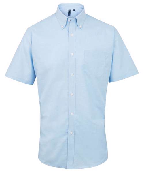 Men's signature Oxford short sleeve Easycare shirt with wrinkle free finish for a smart and professional appearance. Button down collar. Left breast open mitred pocket. Short sleeves. Back pleats. Cotton rich Oxford fabric. Semi fitted styling.