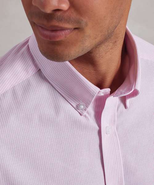A welcome addition to our range of signature Oxford shirts, this style is designed with narrow vertical stripes for a touch of high street inspiration. As you would expect, this iconic style features the classic button-down collar with double buttons to the cuff. Choose to wear more casually with an open collar and roll-back sleeves and a flash of contrast fabric becomes visible on the inner neckband and inside cuff.