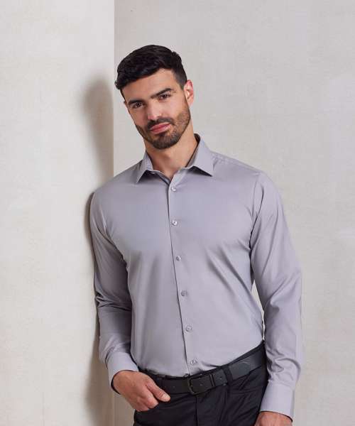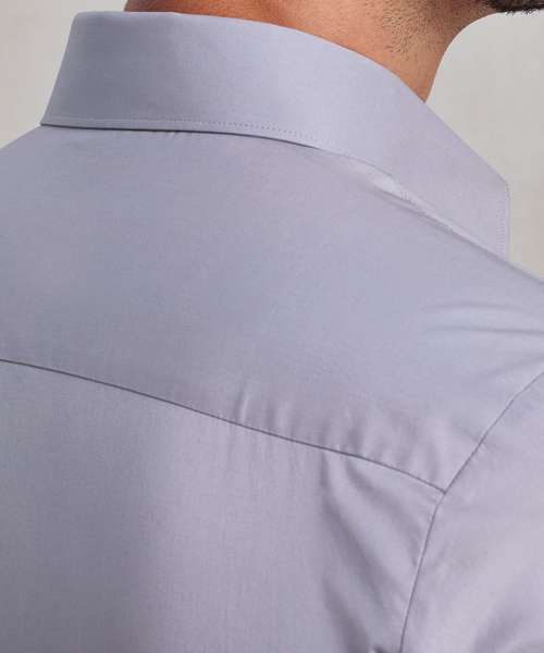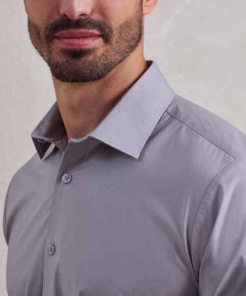 Cotton combined with elastane makes for a super soft, stretchy and comfortable fitted style for men. Double buttons on the cuff, together with a single button sleeve guard, allows for either a formal arm or a more casual roll back option. Styled with a stiffened cut-away collar with top button - which again, can be worn formally with a tie or open collared for a more relaxed look.
