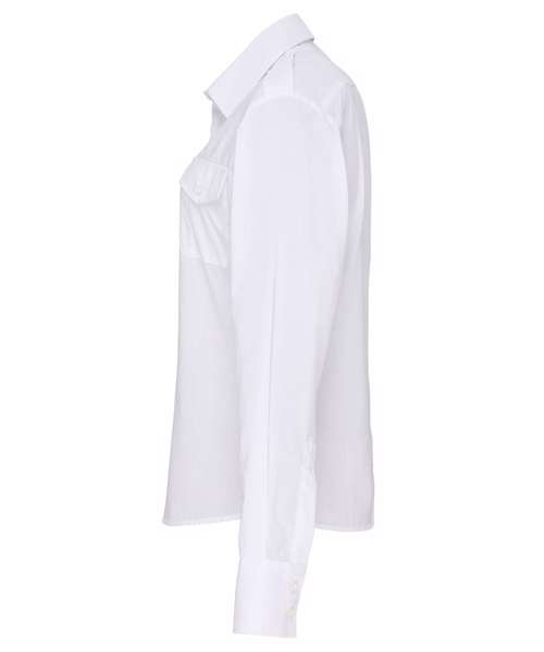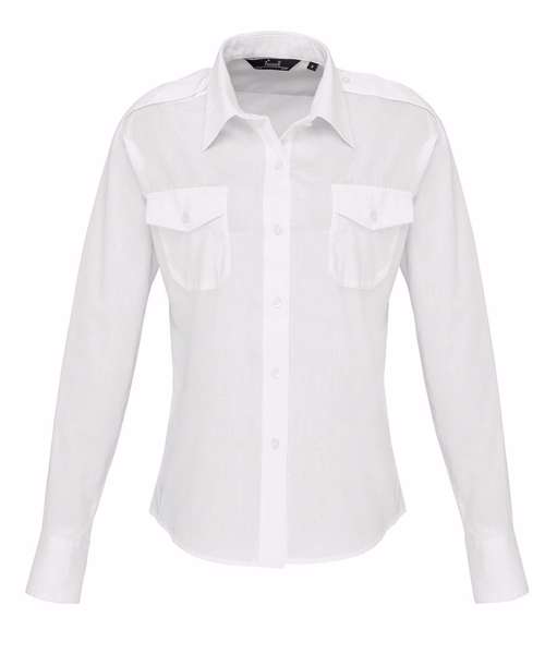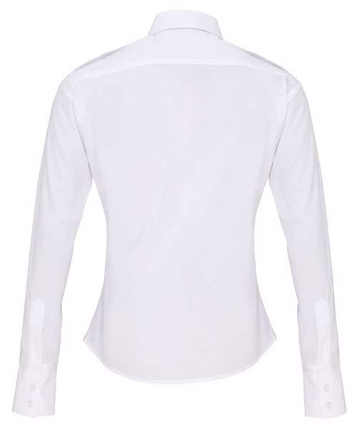This women's long sleeve blouse offers tabs on the shoulders for the application of Epaulettes (PR715) and the stiffened collar makes it easy to affix a clip-on cravat (PR711).