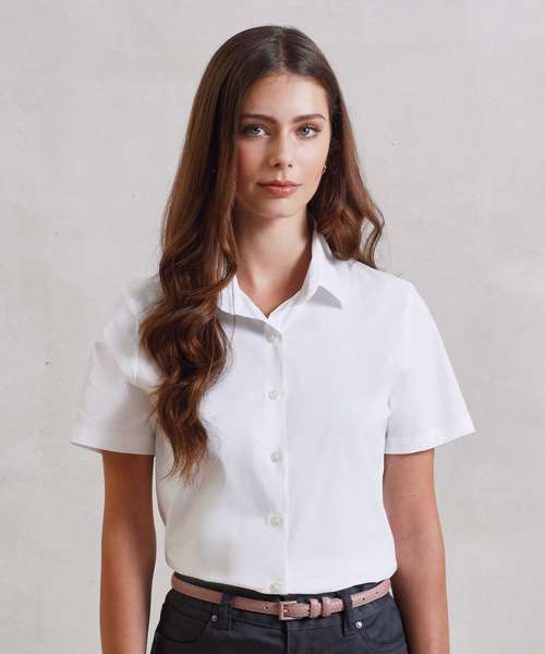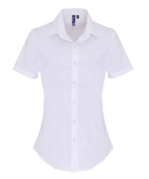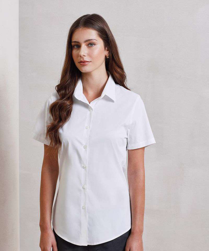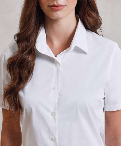 Cotton combined with elastane makes for a super soft, stretchy and comfortable fitted style for ladies. A soft cut-away collar with top button which can be worn formally with a scarf or open collared for a more relaxed look.