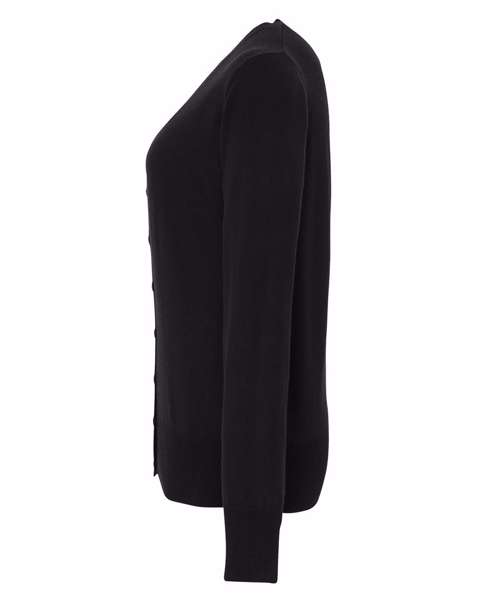 A simple easy wearing cardigan for ladies that adds layers of style to your outfit. Designed with ribbed knit set-in sleeves, hem line and v-neck for a contemporary modern look. Self-coloured button through style. A wardrobe essential for staff who need to maintain a smart corporate image at all times.