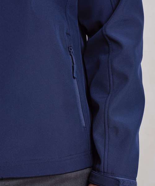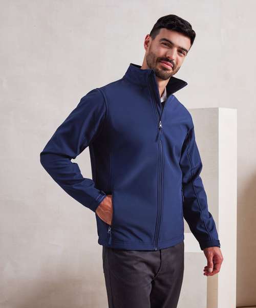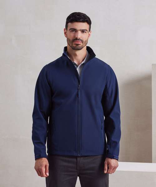 Two-layer softshell jacket with a bonded fleece inner, featuring two handy patch pockets. Full zip-through style with zip pull. Cadet collar with chin guard. Zipped side pockets with zip pulls. Hook and loop strip on cuffs for adjustable fastening. Elastic drawcord to the hem with plastic cord lock to secure in place. Made from 100% certified recycled polyester with Premier’s Windchecker® trademark for a wind- and water-resistant style that is suitable for screen print applications.