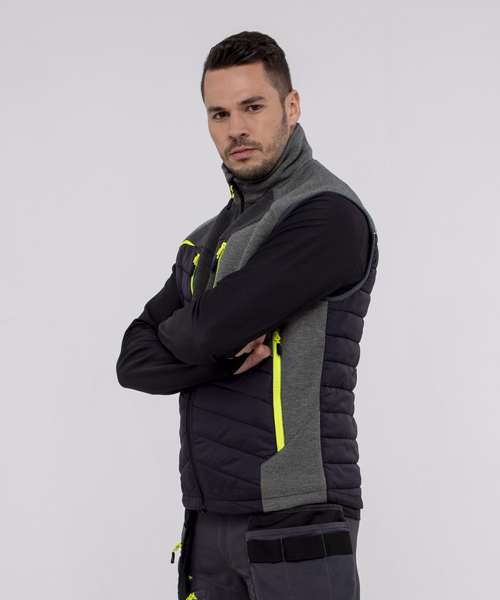 Shell Fabric: Titanmill Ultra: 100% Nylon 300T, Anti-Static Finish 65g. Filling Fabric: 100% Polyester 120g. Contrast Fabric: 75% Polyester, 16% Viscose, 9% Elastane