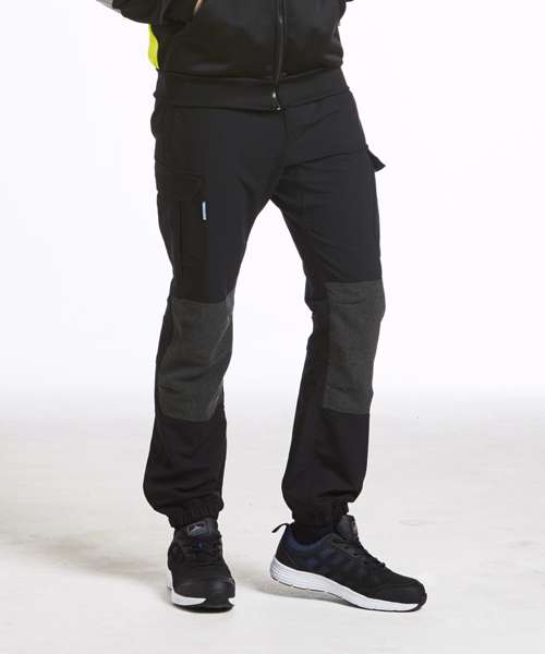 Cargo pockets on side leg. Double-layer knee protection. D-ring. 5-pockets. Bar tacked at all stress points. 4-way stretch fabric. Registered Community Design. Contemporary design with clean cut lines. Crotch gusset. Pre-bent knees. Fully ribbed waistband with drawstring . Slim fit cuffed pants. Easy grip pullers.