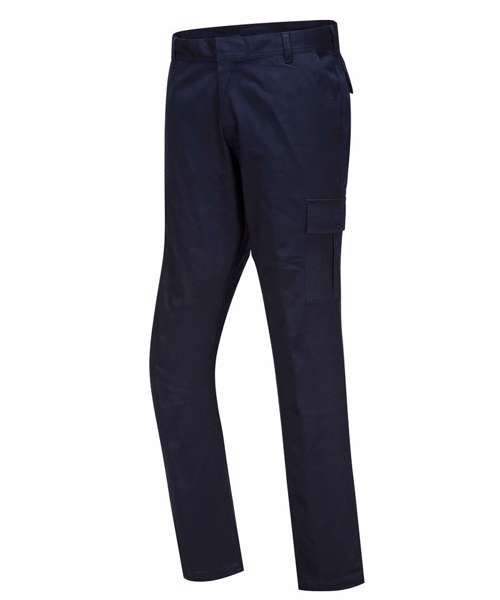Portwest Stretch contains a cotton-rich and elastane mix with superior comfort and freedom of movement. High cotton content for superior comfort. Outstanding colour fastness and shrinkage results. Soft-handle twill. Hook and bar closure. 6 pockets for ample storage. Easy access cargo pockets. Twin-stitched seams for extra durability. Reflective trim on inner hem for increased visibility. 50+ UPF rated fabric to block 98% of UV rays.