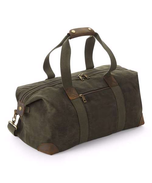 TearAway label for ease of rebranding. Genuine leather accents. Extra long main compartment zip for easy access. Snap fastening fold down ends. Cotton webbing carry handles. Antique brass effect fittings. Fully lined. Hidden lining zip for easy decoration access. Internal valuables pocket. Detachable adjustable shoulder strap. Can be carried by hand or over the shoulder. BSCI certified. Reach certified.