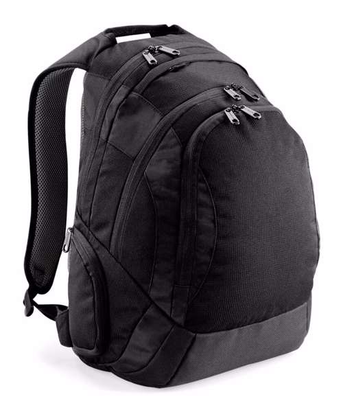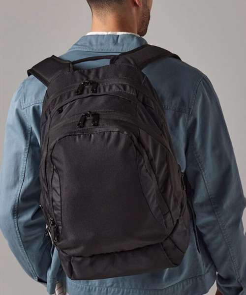 Laptop compatible up to 15.6". Padded laptop compartment. Multiple internal pockets. Padded adjustable shoulder straps. Front pocket organiser section. Ergonomic padded back panel. Document section. Plush lined media pocket with secure closure. Media pocket and headphone port. Zippered side pockets.