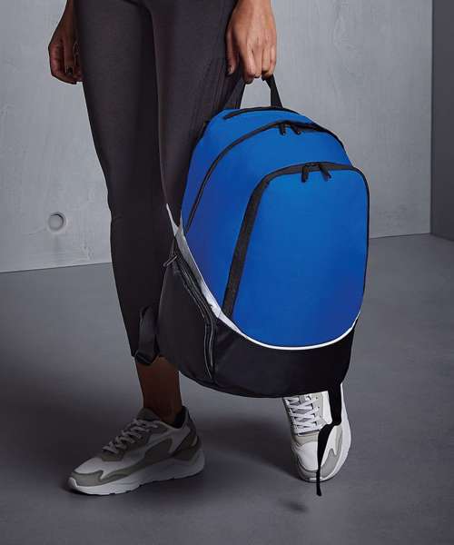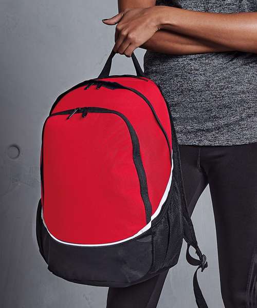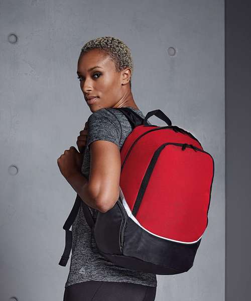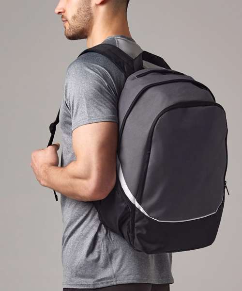 Wet pocket/match ball pocket. Zippered side pocket. Elasticated mesh side pocket. Plush lined media pocket and headphone port. Padded adjustable shoulder straps. Padded back panel. Grab handle.