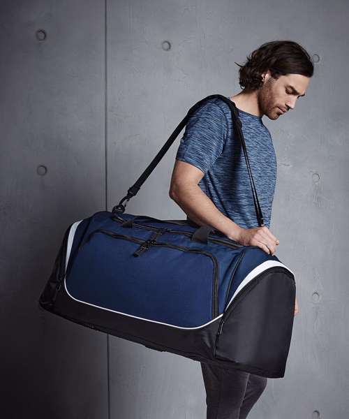 Front pocket designed for easy decoration. Large main compartment. Two large end pockets. Internal valuables pocket. Internal mesh pockets. Water bottle holder. Detachable adjustable shoulder strap with pad. Padded hand grip. Internal baseboard. Protective base feet.