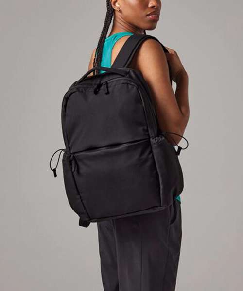 Contains 100% certified recycled polyester. Two-way zipped opening for easy access. Rear padded laptop compartment, compatible up to 16". External side pockets with cord adjuster. Zipped front pocket with two internal padded slip pockets. Rear luggage strap. TearAway label for ease of rebranding.