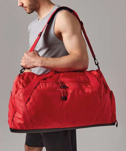 Contains 100% certified recycled polyester. Two-way zipped opening for easy access. Dedicated racquet pocket. Fits racquets up to approximately 23cm wide. Hockey stick sleeve with elastic retainer. Shoe tunnel/wet pocket. Zipped front pocket. Zipped rear pocket. Stretch mesh side pocket. TearAway label for ease of rebranding.