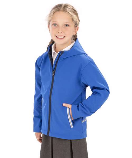 320g/m² 3-layer bonded fabric. Micro fleece lined for extra warmth. Soft, high-stretch fabric and comfortable active cut. Fashionable, shaped longer back panel. Decorative sleeve and hood detail. Full front zip with chin guard. Front pockets, open cuff. Reflective detail front and back. Unisex. Decorating methods: Embroidery. Decorator's access point: open.