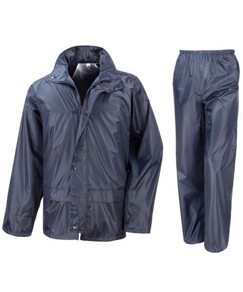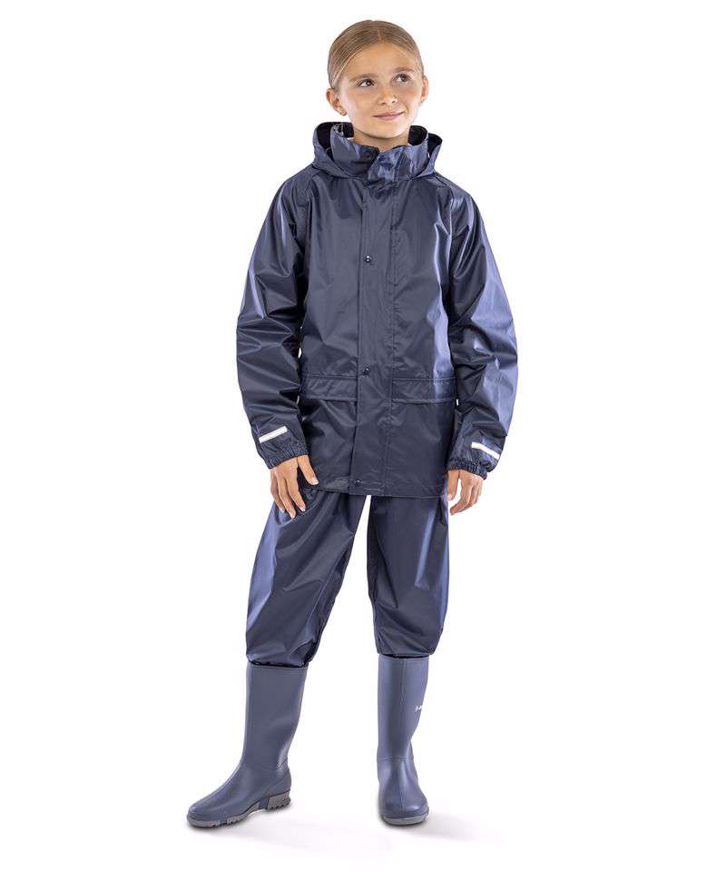 JACKET: Waterproof 2000mm and windproof. Fully taped seams: watershed shoulders. Foldaway integrated, elasticated hood. Full zip fastening with stud closing storm cover. Spacious front pockets. Adjustable drawcord hem. Reflective cuff. Inner back mesh ventilation. Inner elasticated storm cuff. TROUSERS: Fully taped seams. Elasticated waistband. Hip vents to access the garment worn underneath. Adjustable snap closing ankles. Ready to brand cutaway label. Decorating methods: Embroidery. Decorating methods: Digital transfer print, direct print.