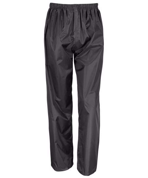 Waterproof 2000mm and windproof. Elasticised waistband. Vents to access the garment underneath. Adjustable snap closing ankles. Ready to Brand Cutaway label. Fully taped seams. Decorating methods: Direct print and Transfer print. Decorator's access point: Open.