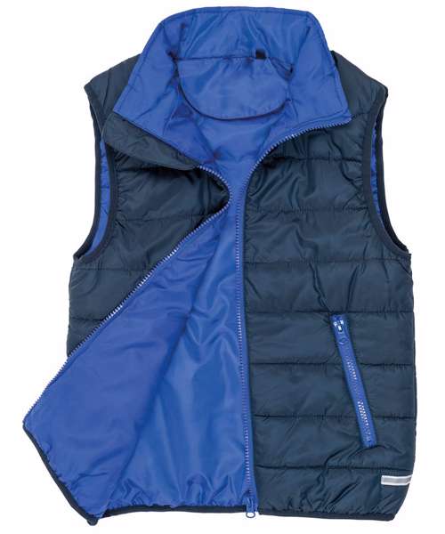 Showerproof, windproof. Hangtag. Zip pockets. Full front zip. Reflective hip detail. Contrast lining and detailing. Soft bound elasticised armhole and hem. Hinged neck panel for self-branding. Super soft, lightweight, and warm. Easy to pack, compact storage. Ready to brand tag-free. Quiet to wear. Decoration guidelines: Embroidery. Decorators access: Inside front zip.