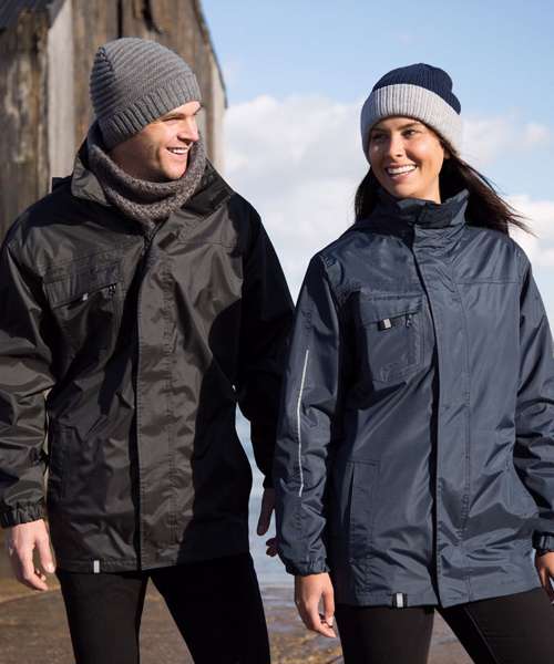 Outer Jacket: Waterproof 3000mm. Windproof. 100% Polyester with taped seams. Inside pockets. Chest zip pocket. Full front 2-way zip. Front side pockets. Reflective detailing. Tear release storm flap. Concealed drawcord hood. Inner jacket: 2-layer 280g/m² printable softshell. Microfleece lined for extra warmth. Easy-to-print fabric. Zipped pockets and elasticised bound cuff. Ready to brand: tag-free.