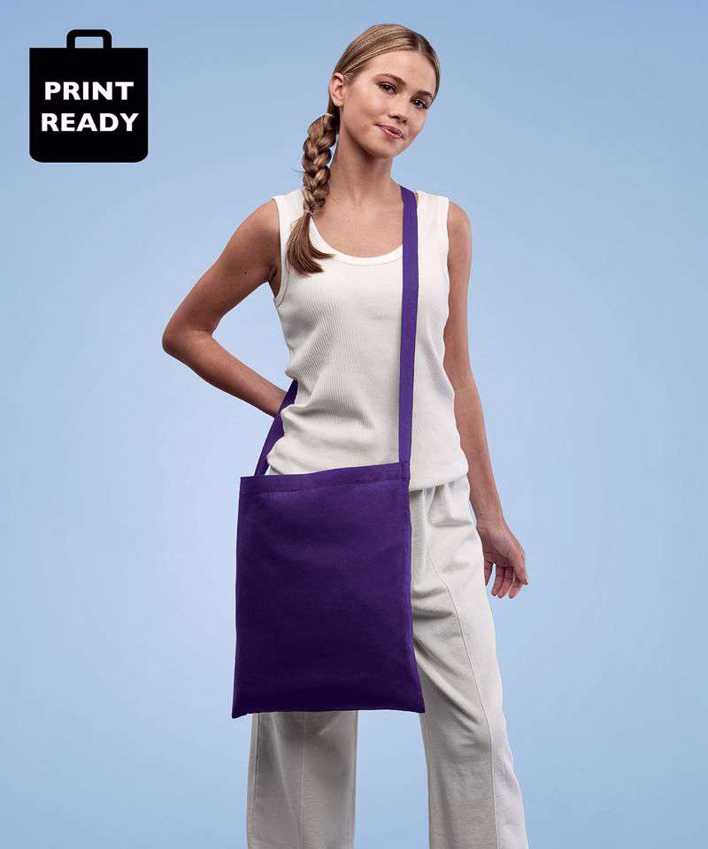 Shoulder shopper with one long handle (120 x 2.5 cm). Perfect print surface. Inside hemmed sewing.