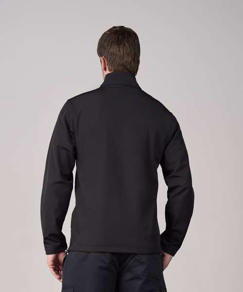 Two layer bonded softshell jacket with full zip front fastening. Relaxed fit. Two front zipped side pockets. Chin guard with internal storm flap. Adjustable shockcord hem.