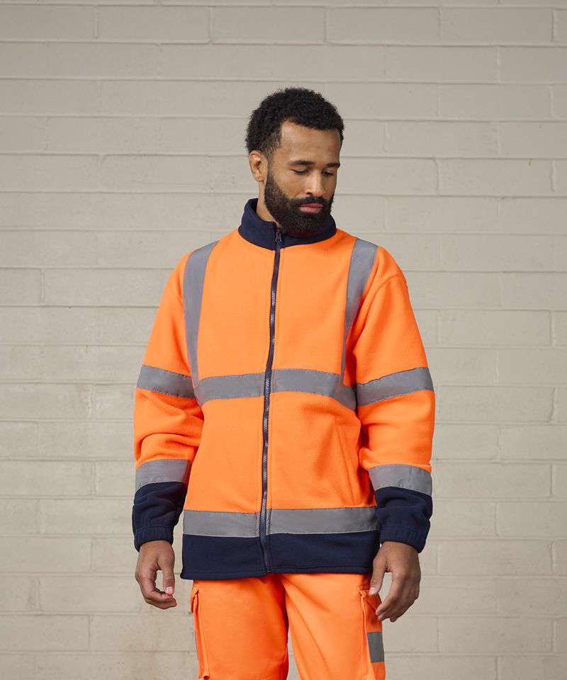 Certified EN ISO 20471:2013+A1:2016. RIS-3279-TOM ISSUE 1:2016 (Orange only). HV Orange/Navy & HV Yellow/Navy - Class 3. Stand-up contrast colour collar. Full-length front zip. 2 side front zipped pockets. Adjustable shock cord hem. Contrast colour cuff and hem. Over shoulder, around arm and body reflective tape.