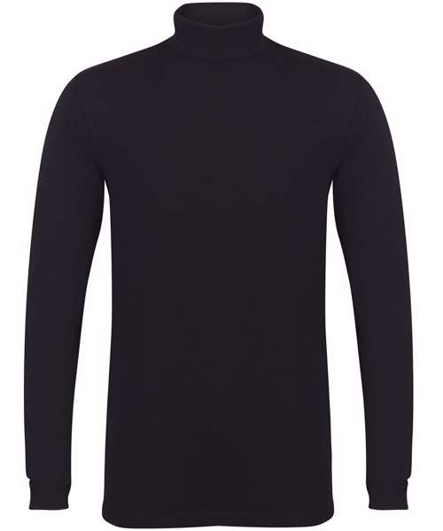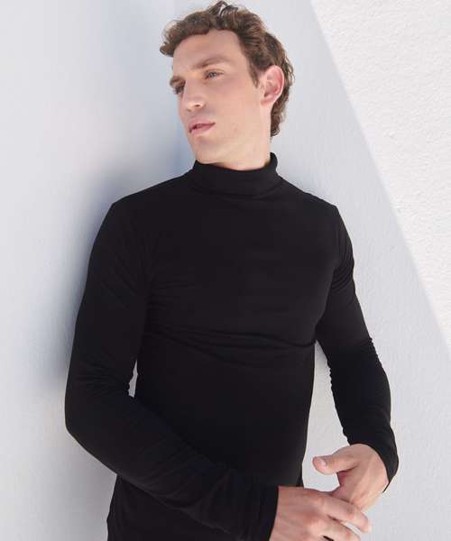 Tear-out SF (Skinnifit) label. Self-fabric roll-neck. Enzyme wash for unique soft hand feel. Modern longline slim fit. Long sleeved. Twin needle stitching at sleeves and hem. Matches women's SK125.