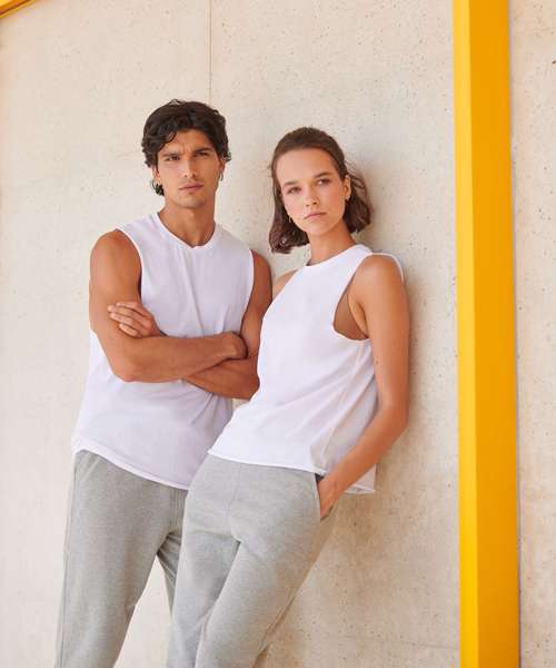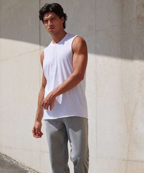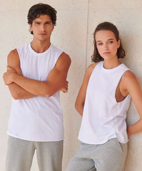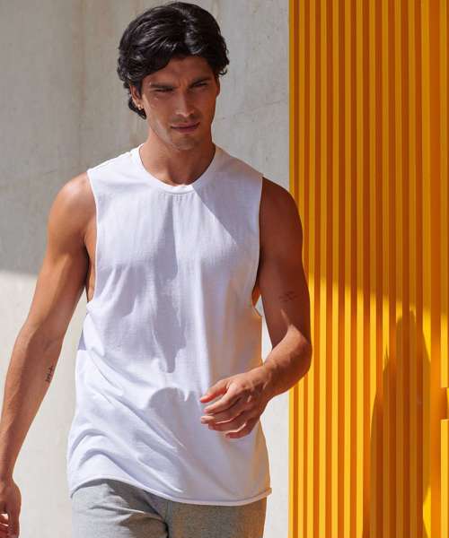 Tear-out SF (Skinnifit) label. Ribbed crew-neck. Raw edge slash armhole and hem. Matches Ladies' SK232 High Neck Slash Armhole Vest.