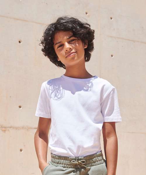 96% Cotton, 4% Elastane. Single Jersey, enzyme finish. Heather Grey: 81% Cotton, 15% Viscose, 4% Elastane